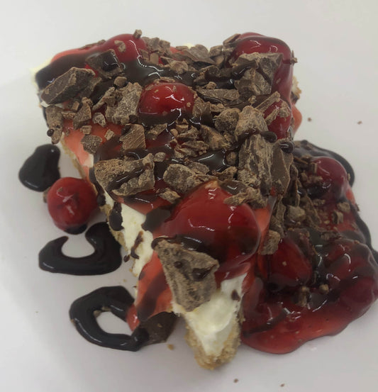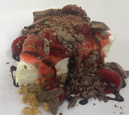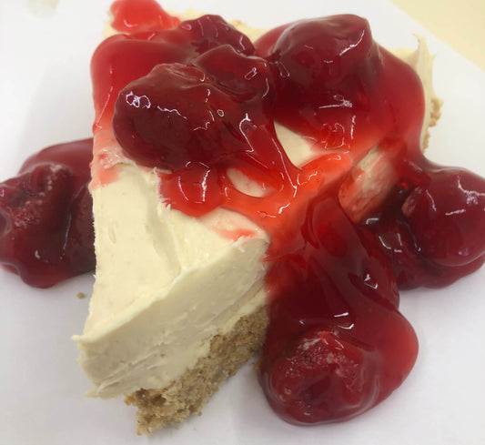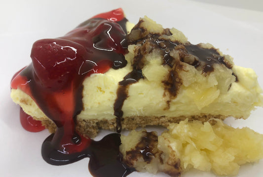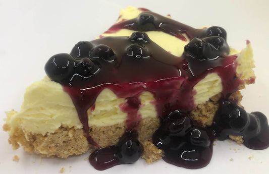 A Grammy Sue's Classic. Made by hand, this cheesecake and handmade graham cracker crust is a piece of heaven. Topped with Blueberries, you'll be glad you tried it.